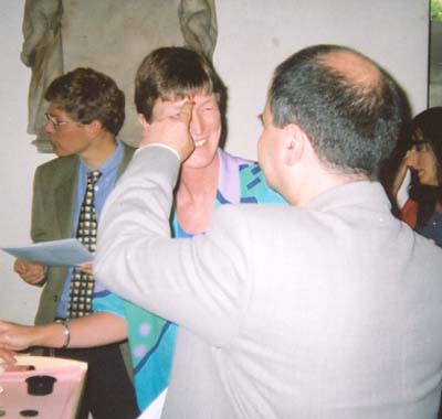 I now invite you all to use these colours to mark one another in a way that celebrates your relationships with those present here today - or mark yourself as a sign of relationships with those who cannot be here.
