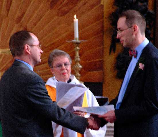 Loving God, in your wisdom you have given us many gifts. Today we thank you for Simon and David, for all that they mean to each other and to their friends and families. We thank you for the love that has brought them to this time and place, and for the declarations they have made before you and us. We pray that they will continue to grow in your love and in the use of the talents that you have given them.